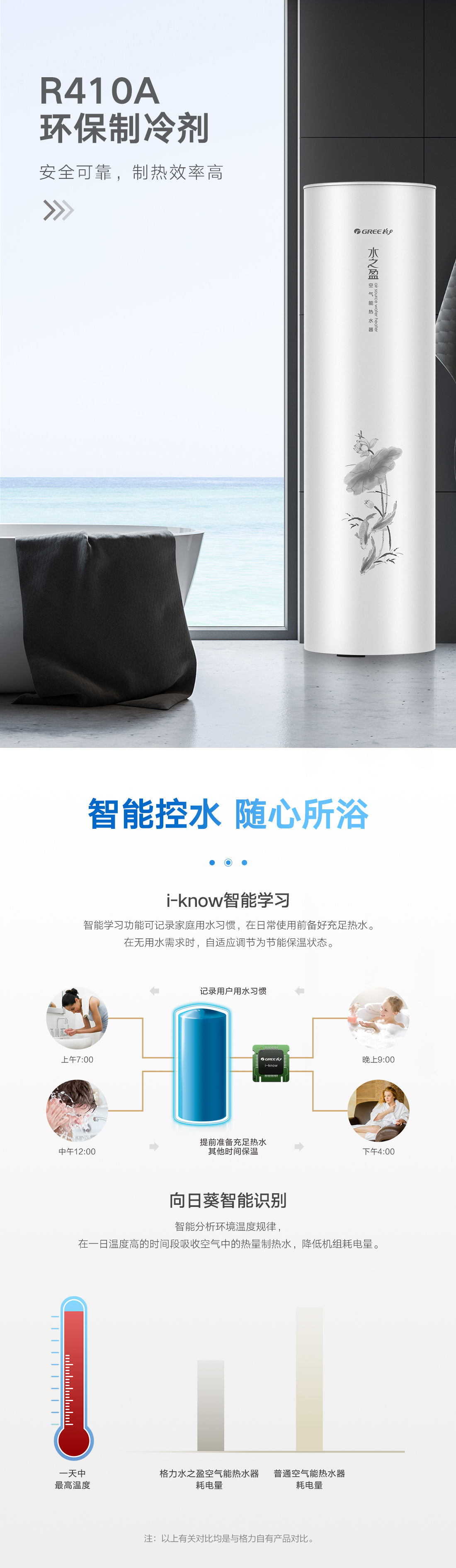 新型環(huán)保冷媒,綠色節(jié)能更高效,內(nèi)置增容、向日葵、i-know等個(gè)性化功能;給您的沐浴帶來(lái)多樣化體驗(yàn)