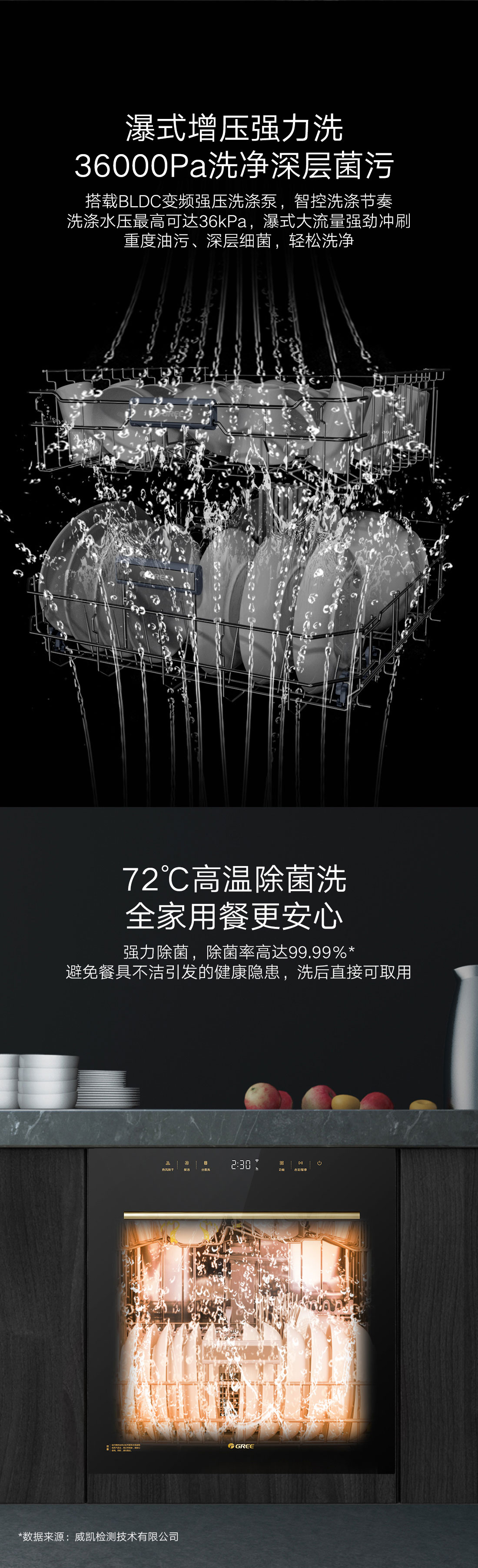 搭載瀑式增壓強洗科技,36KPa洗凈深層菌污,除菌率達(dá)99.99%;洗烘除存一體,存放7天也干爽